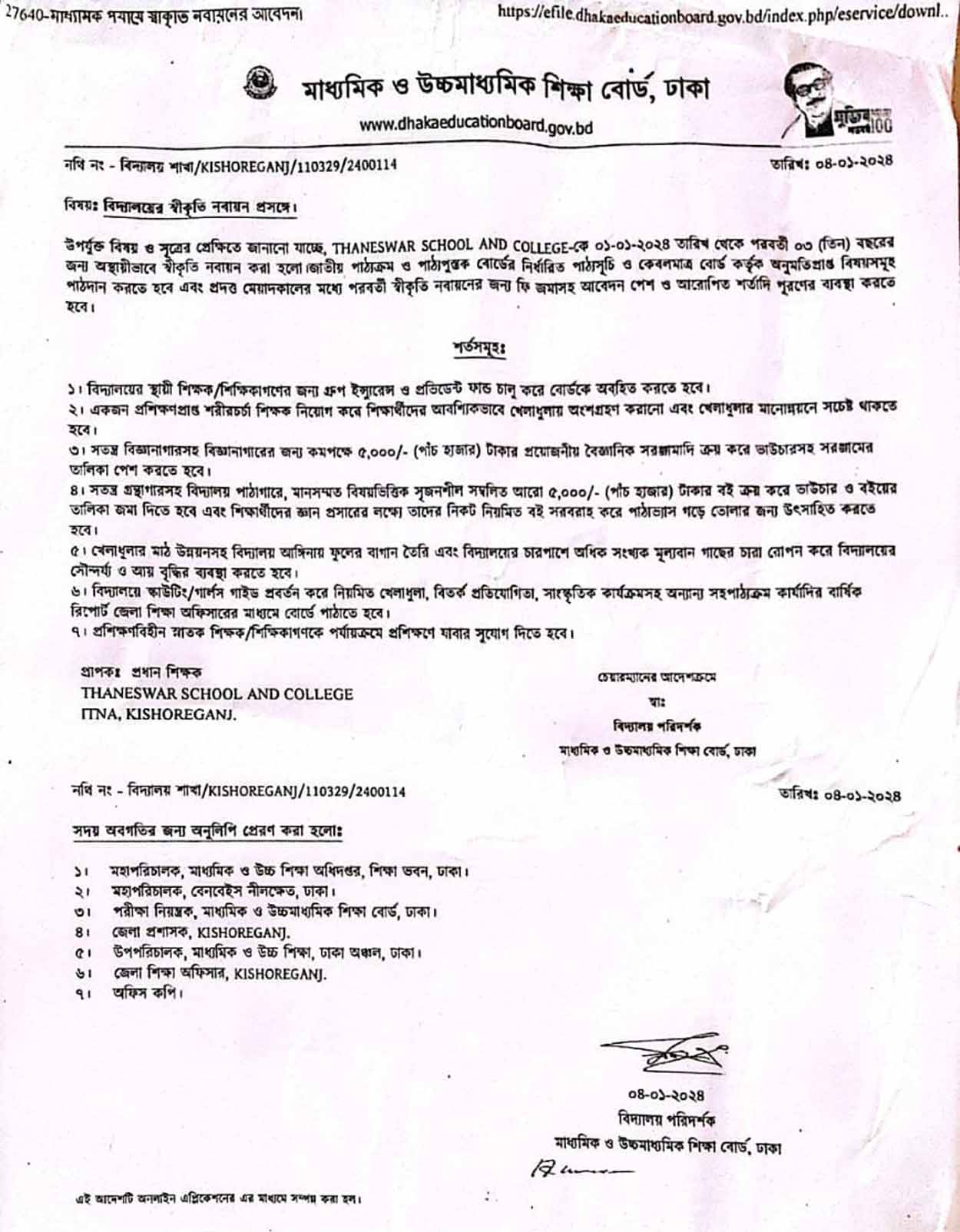 শিরোনাম : থানেশ্বর স্কুল এন্ড কলেজের সর্বশেষ স্বীকৃতি